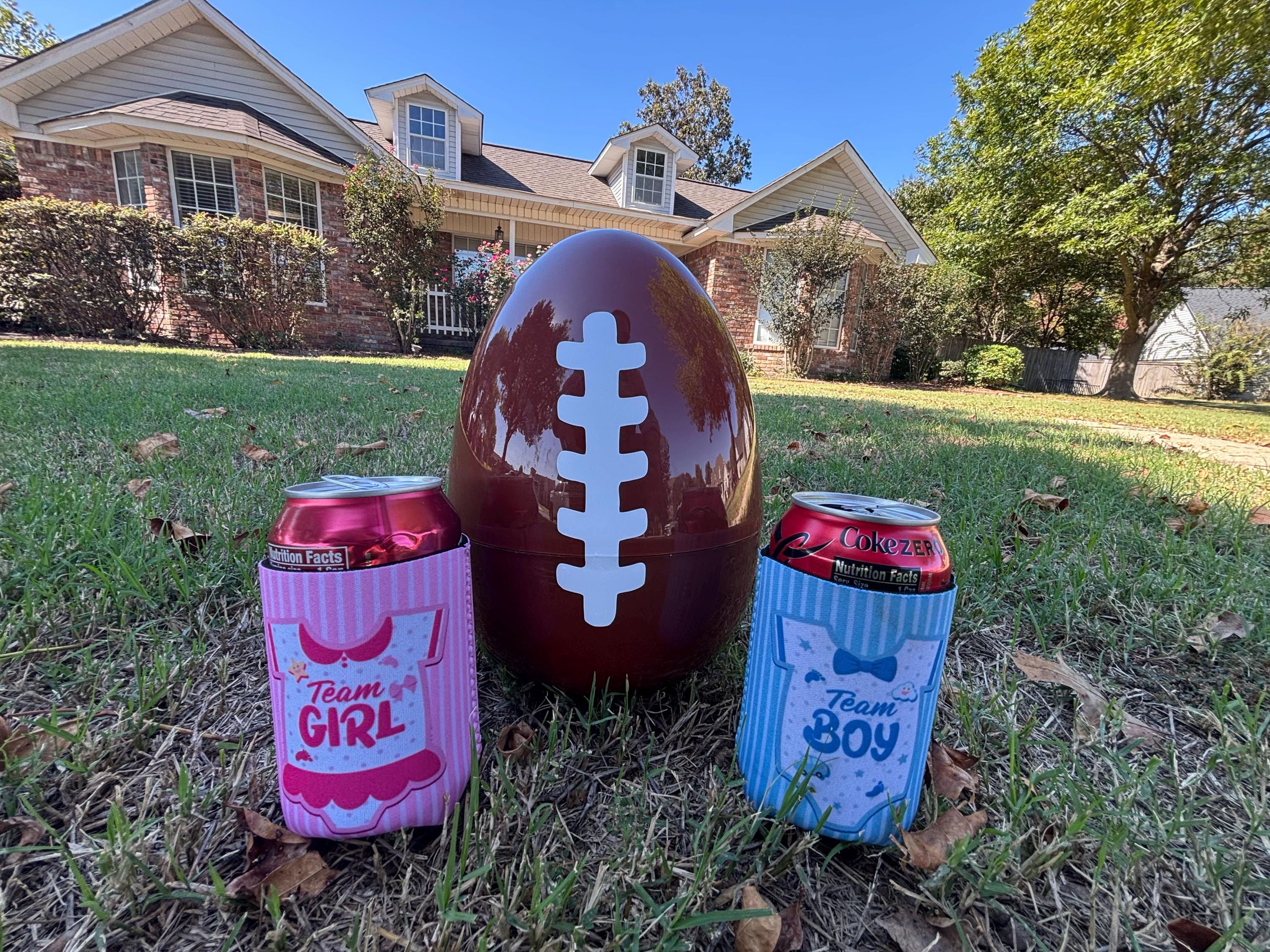 After inventing the gender reveal baseball and golf ball Jon and I set our sights on inventing the first gender reveal football. Now after 4 versions we are releasing an exclusive 10 inch design with both Powder and Confetti. Since we use the most powder and confetti we have had to develop a special elastic plastic to hold the ball together in order to have the perfect arrival. We have done this to equip you with the best product for your gender reveal whether you throw it, punt it, or kick it!